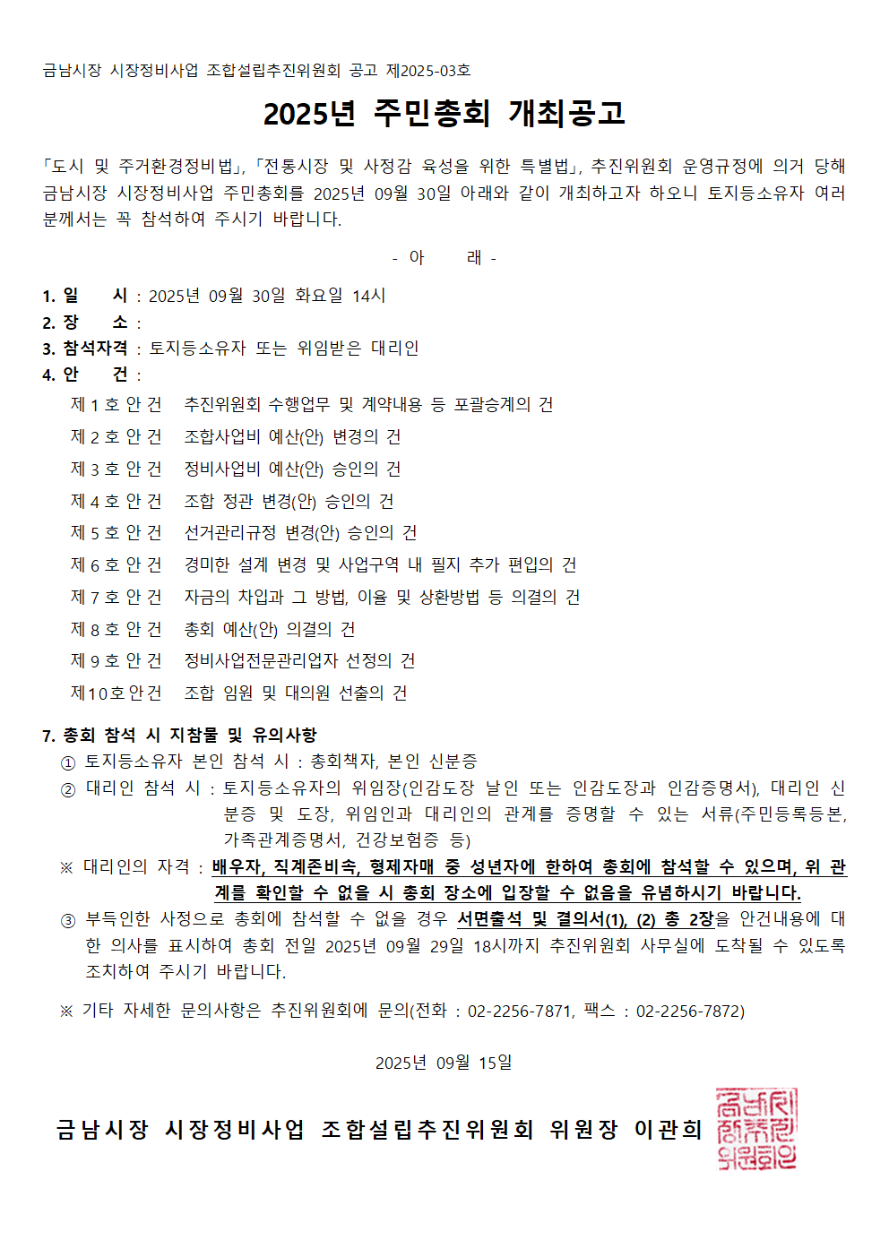 2025년 주민총회 개최 공고